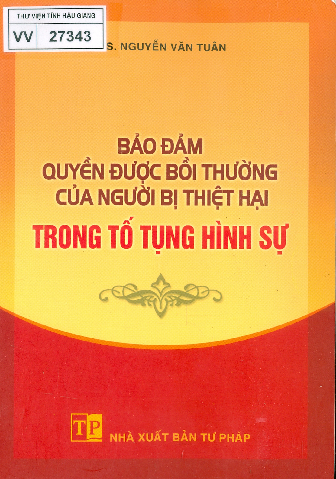 9/. Bảo đảm quyền được bồi thường của người bị thiệt hại trong tố tụng hình sự / TS. Nguyễn Văn Tuân. - Hà Nội : Tư pháp, 2016. - 519 tr.; 21 cm.Tóm tắt: Gồm các vấn đề về bảo đảm quyền được bồi thường thiệt hại của người bị oan trong tố tụng hình sự và giải quyết vấn đề dân sự trong vụ án hình sự▪ Từ khóa: KHO TỰ CHỌN | BỒI THƯỜNG THIỆT HẠI | PHÁP LUẬT | TỐ TỤNG HÌNH SƯ | VIỆT NAM▪ Ký hiệu phân loại: 345.59704 / B108Đ▪ KHO SÁCH PHÒNG ĐỌC- Mã số: VV.027343 ▪ KHO SÁCH PHÒNG MƯỢN- Mã số: PM.031012; PM.031013